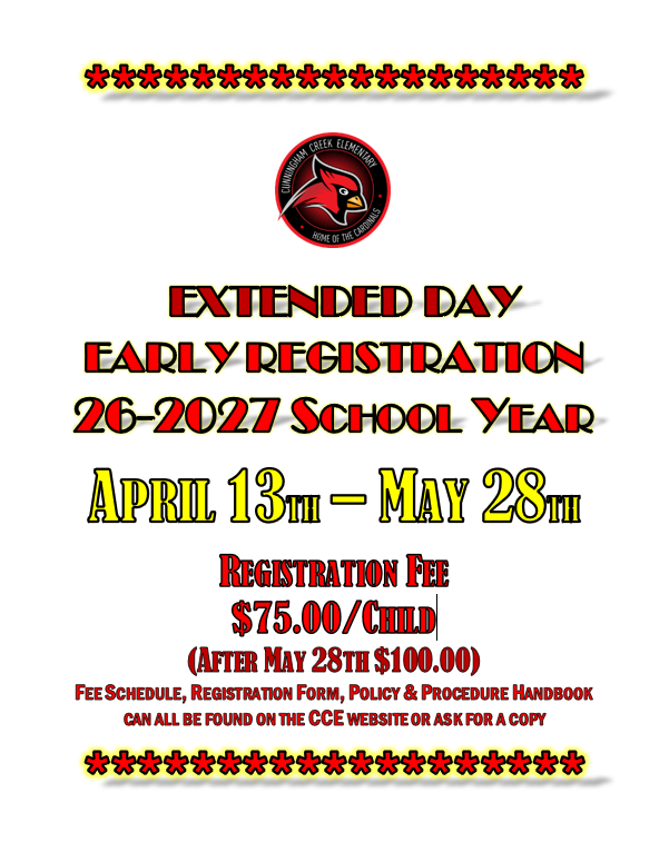 The Extended Day program is a service provided to the community in conjunction with the Saint Johns County School District. This service is to provide care for children who attend Cunningham Creek Elementary while parents are at work both before and after school. This program is available to children in grades K-5th.